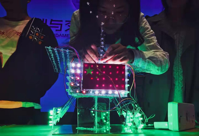 本次比赛旨在庆祝中国共产党百年华诞,参赛选手们以此为主题,在外观设计、电路布线控制以及编程等方面发挥各自的特长,精心设计制作了竞赛作品。本次比赛共计35支队伍参赛,进入决赛的有21支队伍。经过激烈的角逐,评出一等奖2名,二等奖4名,三等奖7名。
