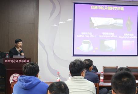 报告中,宋延林研究员首先分享了通过液滴操控实现超高精度图案化的新策略,精准解决影响印刷精度的难题,相关技术极大地突破了印刷制造的精度极限,随后宋延林研究员对所建纳米尺度“点、线、面、体”结构在各类柔性电子器件制备上的应用进行了阐述,让与会师生切实感受到现代印刷技术“绿色化、功能化、立体化、器件化”的发展趋势和格局。报告会结束后,参会的各位老师和同学积极提问,与宋延林老师进行了深入地讨论交流。