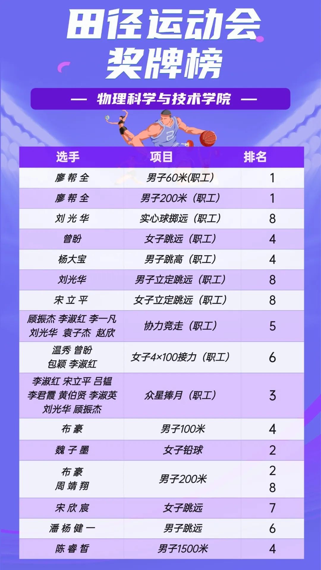 本届运动会我院师生团结拼搏,积极进取,获得了校精神文明奖及职工团体总分第七名;同时,运动员们为热爱注入力量,为梦想驰骋而上,在本次运动会中也取得了优异的成绩。