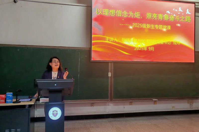 为全面贯彻落实习近平新时代中国特色社会主义思想与党的二十大精神,加强爱党爱国爱社会主义教育,帮助广大学子筑牢信仰根基、坚定理想信念,9月26日,成人a片 党委书记成玲以《以理想信念为炬,照亮青春奋斗之路》为题,为2025级全体新生讲授了“铸魂”专题党课。成人a片 党委副书记宋柯主持并参加。