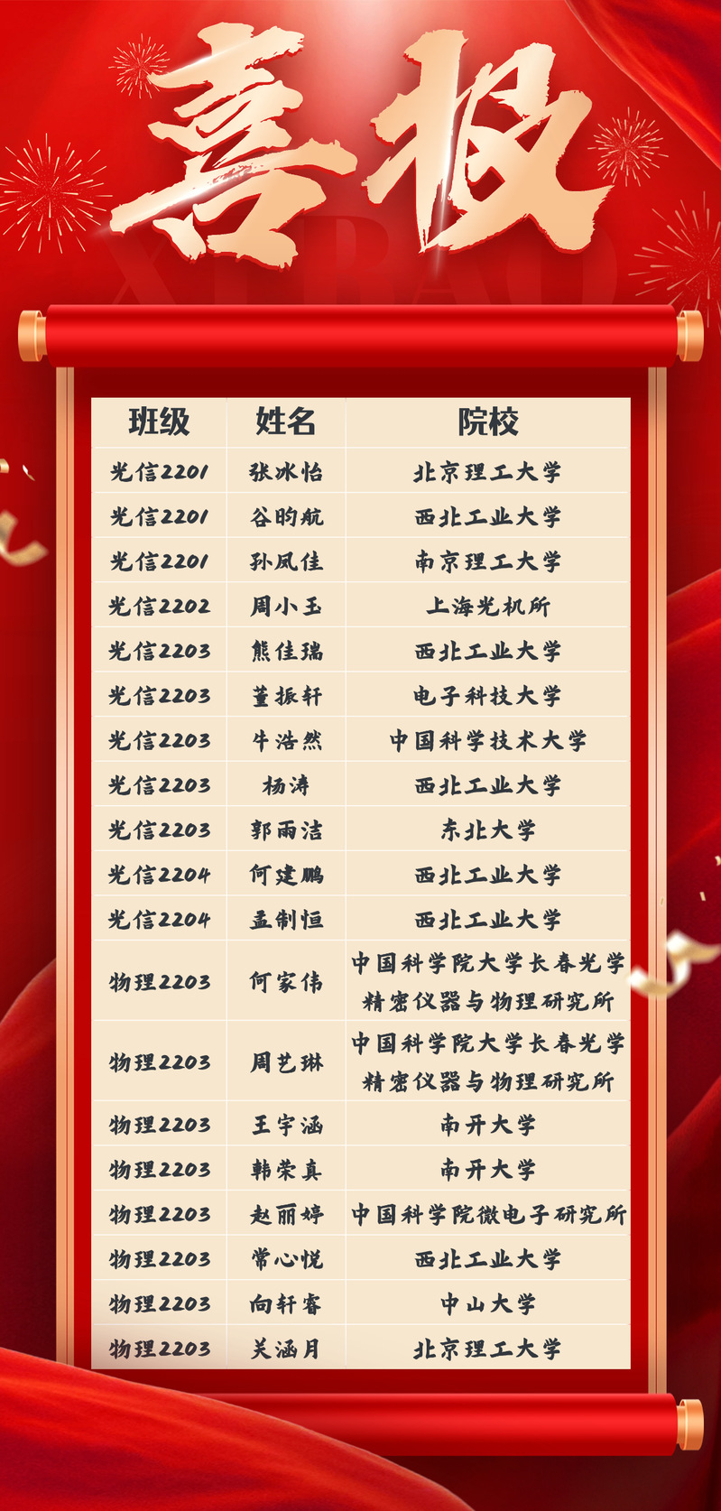 用智慧点亮未来,以拼搏铸就梦想。成人a片 2026届19名同学成功推免保研到理想的高校,其中,有11名同学来自光电信息科学与工程专业,有8名同学来自应用物理学专业。